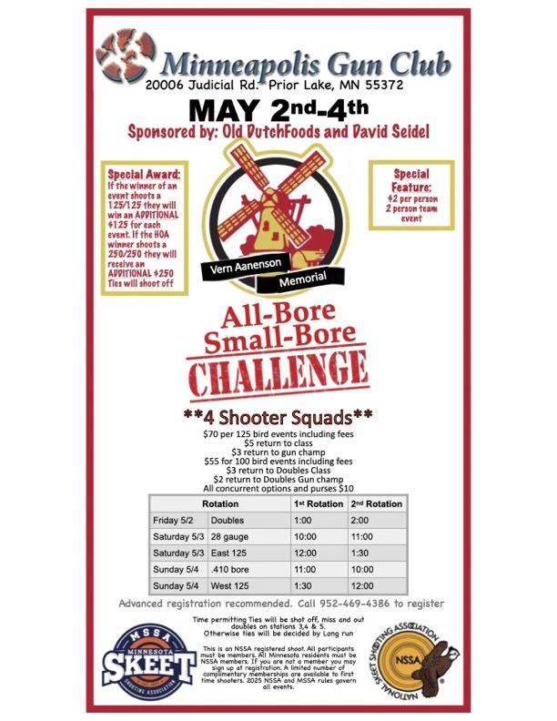 Attention members and guests: The Minneapolis Gun Club is implementing a cold weather policy. If one hour prior to opening, the temperatures are 0 °F or colder or if the wind chill temperature is -10 °F or colder, the club will be closed for the day.